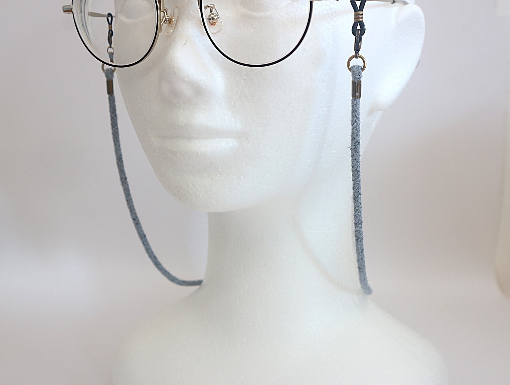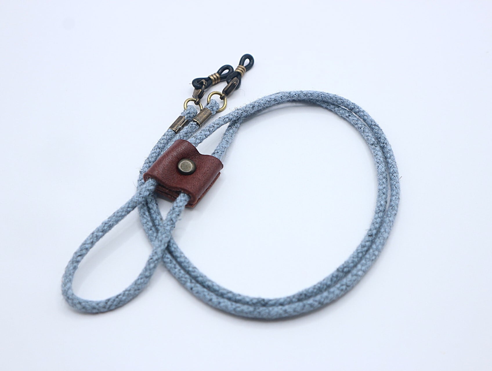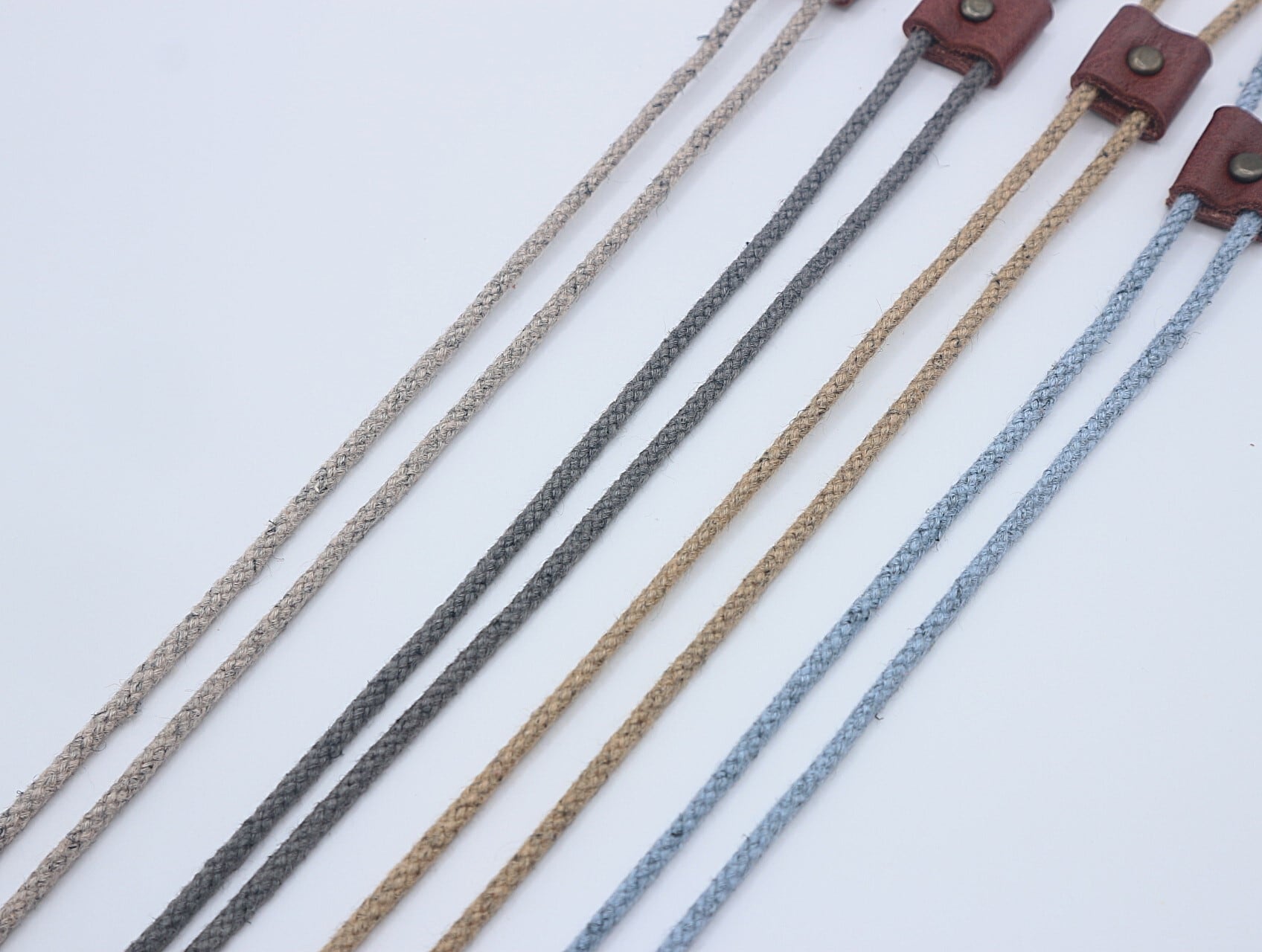 素朴で奥行きのある表情が魅力的な〈A324 メランジュ (杢調) のメガネコード〉。コットンと麻素材が絶妙にミックスされたテクスチャーが、日常のスタイルにさりげなく個性をプラスします。長さ調整が可能なアジャスター部分は本革仕上げで、高級感を演出しつつも温かみのある素朴さを感じさせるデザインです。