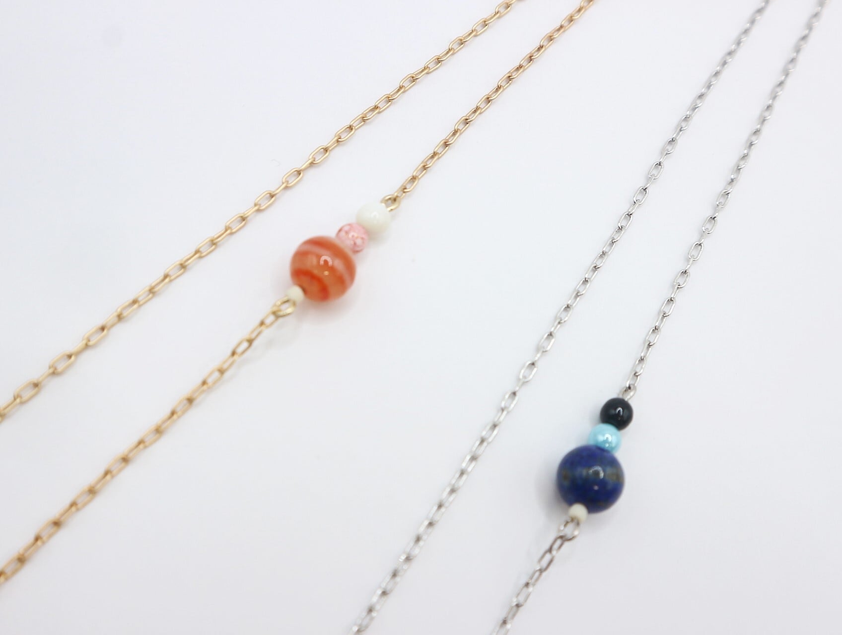A427 惑星をイメージした天然石&チェーンのメガネコード