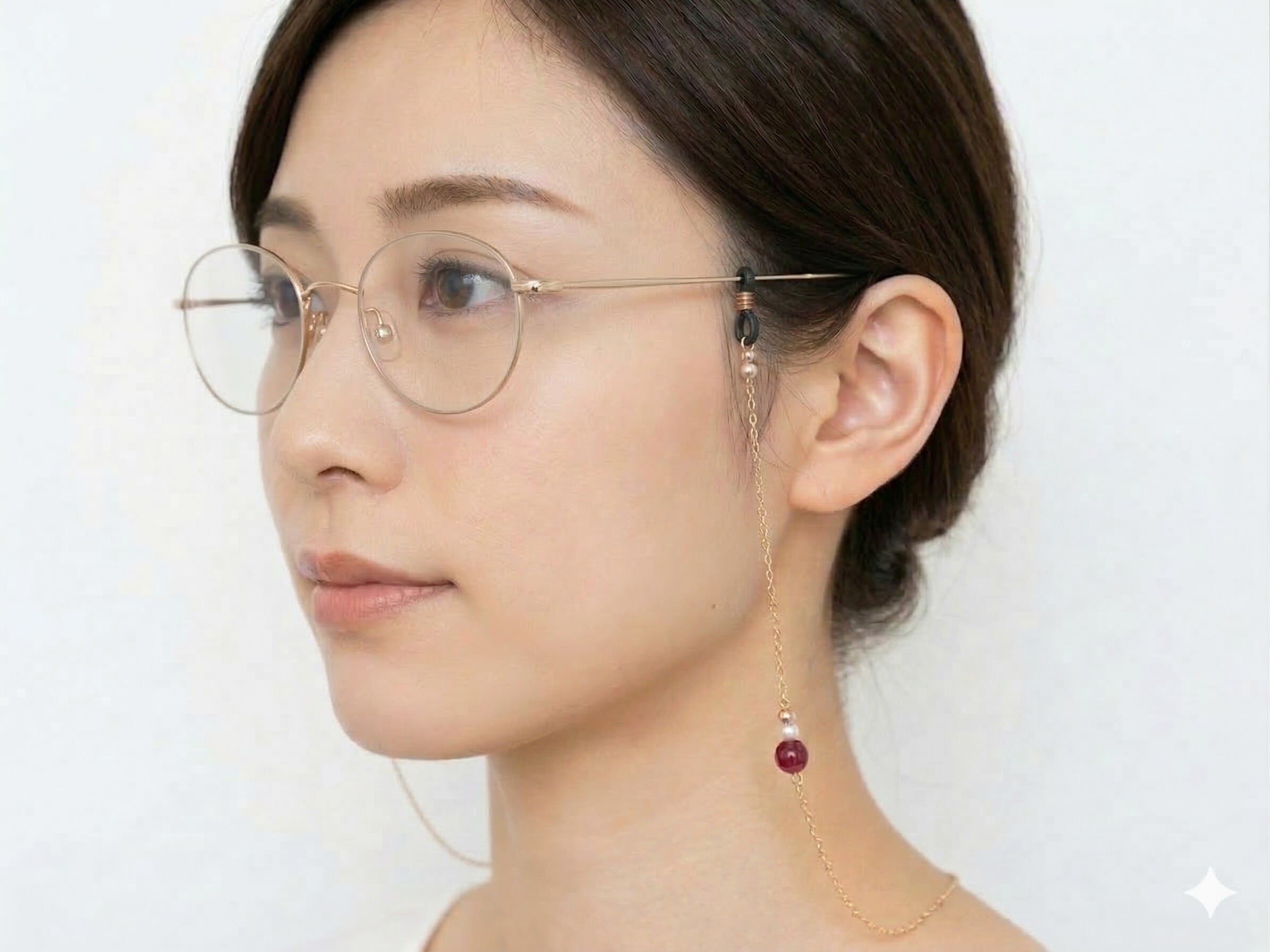 魅力的なデザインと高級感が融合した〈A553 カラータイガーアイ&パールガラスとメタルチェーンのグラスコード〉。それぞれ ピンクレッド、グリーン、ダークブルーのタイガーアイと パールガラスが美しい配色で組み合わされ、つやゴールド、つやシルバーの金属チェーンが全体をエレガントに引き立てます。特別なデザインは、お気に入りのメガネやサングラスの個性を際立たせる一品です。