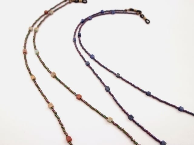 A616 キューブ半貴石とマットカラー粒ビーズ のメガネコード