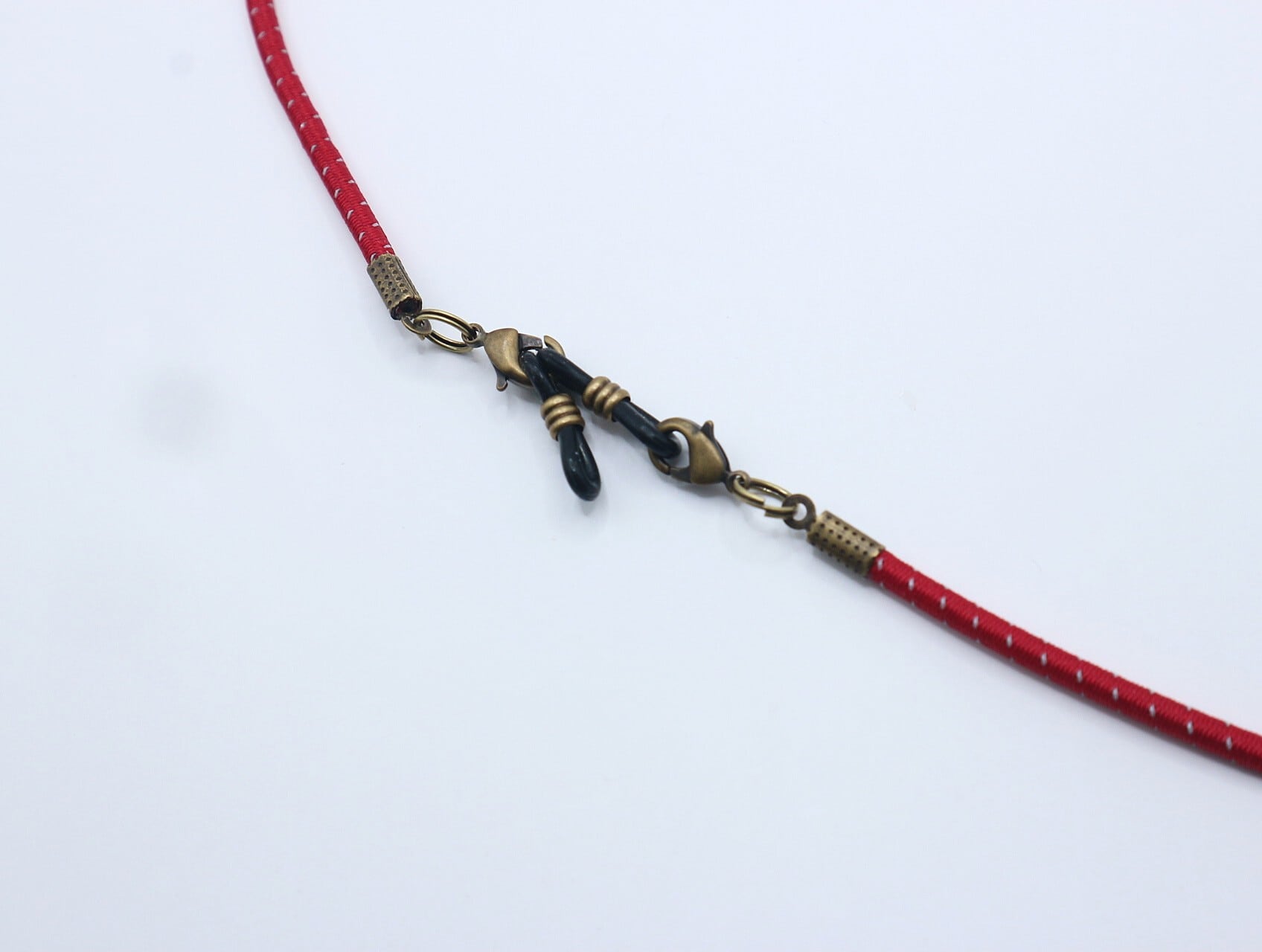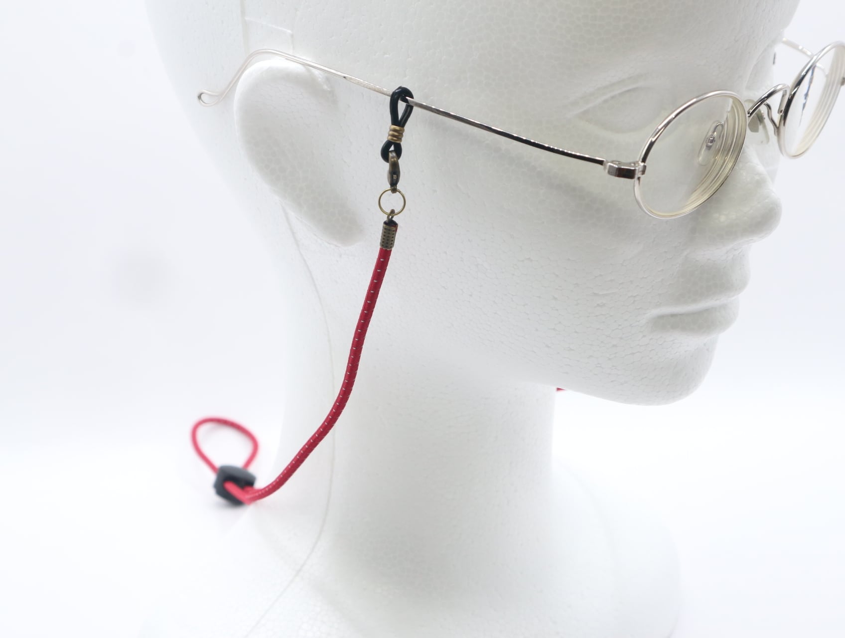 またゴム部分のフックをつなげてループ状にし、その先端に眼鏡を吊るしてグラスホルダーとしてもお使いいただける、メガネコードとホルダーの2WAYのアイテムです。
